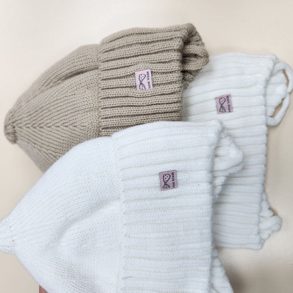 Оставить отзыв о «Шапка вязаная для девочки на завязках, лапша, нашивка с бантиком»