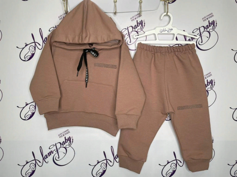 Главная » Каталог товаров » Детский трикотаж » Костюмы тонкие » 105/1 Брюки +кофта с капюшоном, коричневый