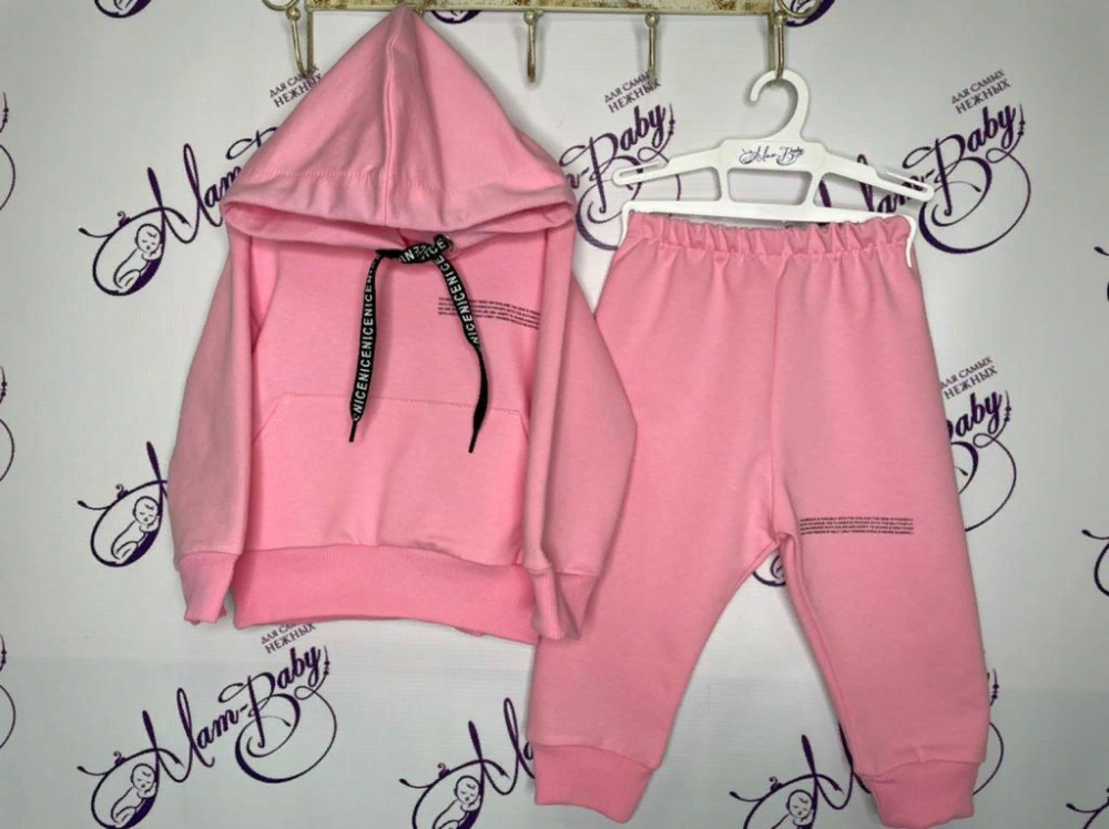 Главная » Каталог товаров » Детский трикотаж » Костюмы тонкие » 105/2 Брюки +кофта с капюшоном, надпись