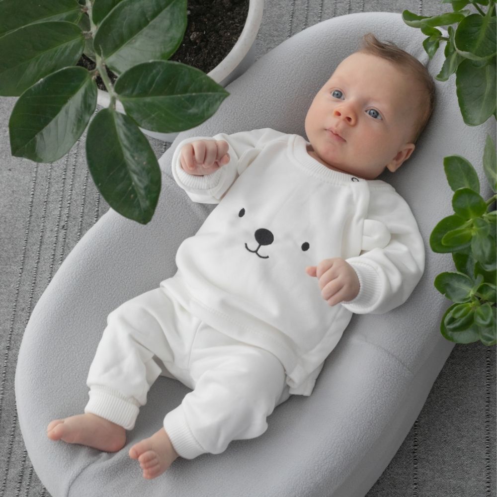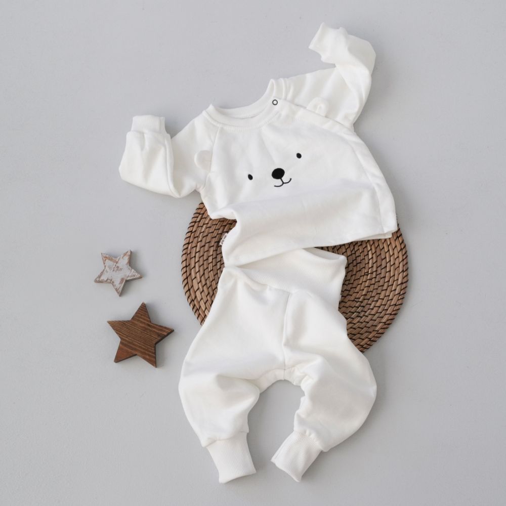 Худи с вышивкой мордочки медвежонка на грудке, распашное на кнопочках сбоку, что позволит легко одеть и раздеть малыша, на рукавах предусмотрены регулируемые манжеты