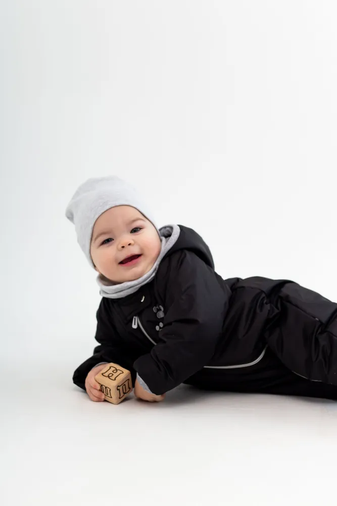Комбинезон из однотонной, плащевой ткани. Декорирован вышивкой на полочке, удобная молния до конца изделия. Утеплитель: силиконизированное волокно 100 г/м2. Подклад: кулирка (100% хлопок). Сезон: осень/весна, температурный режим от +5 до +15С.