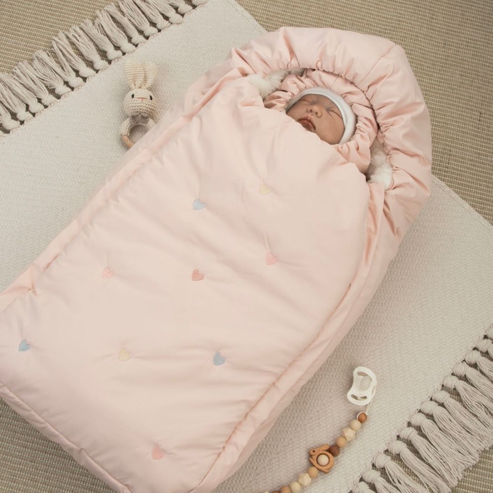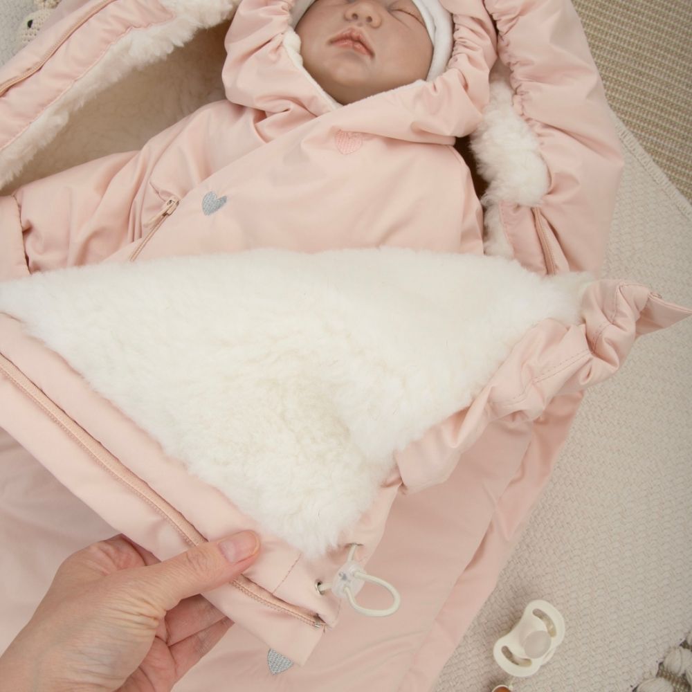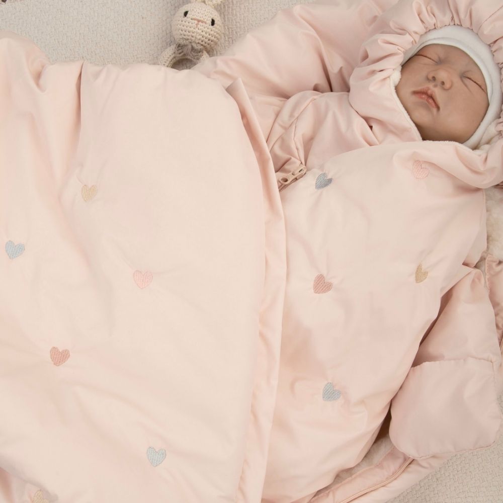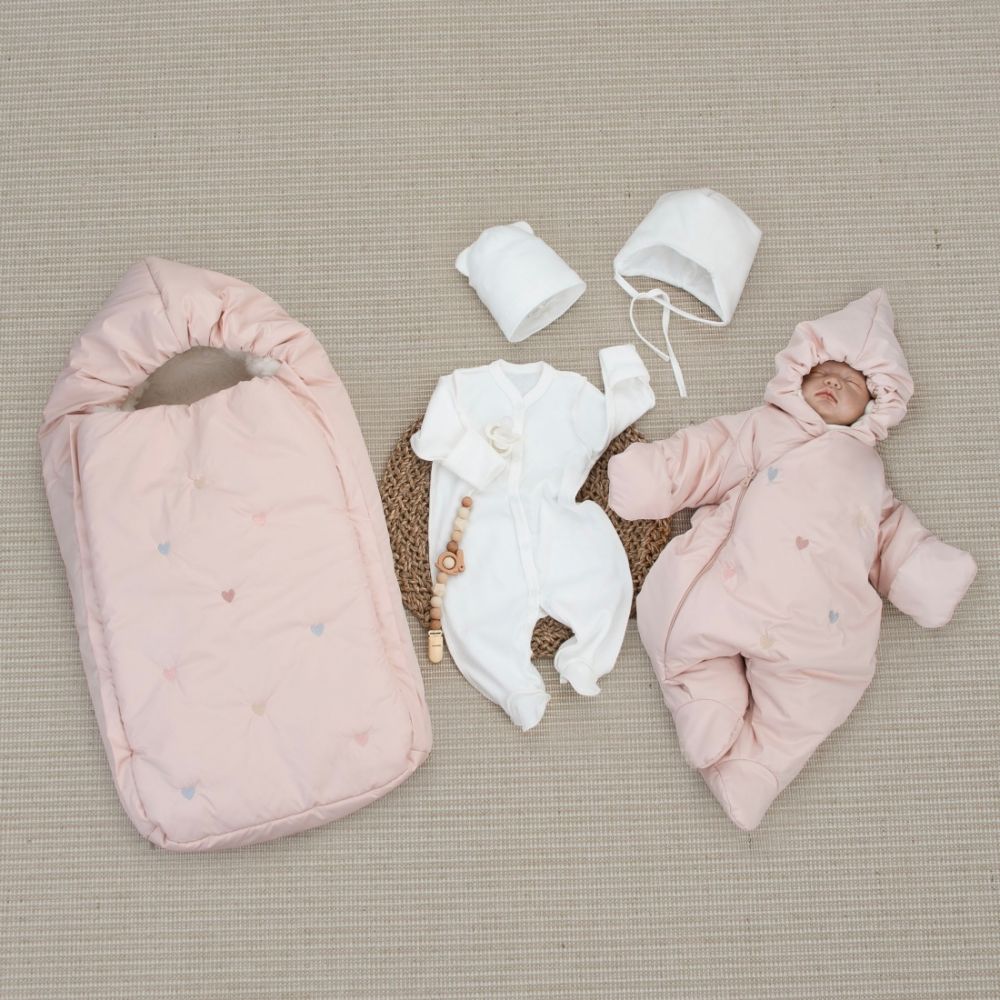 Другие фото Комплект на выписку 5 предметов "Акварель.Вышивка Сердечки", зимний, розовая пудра