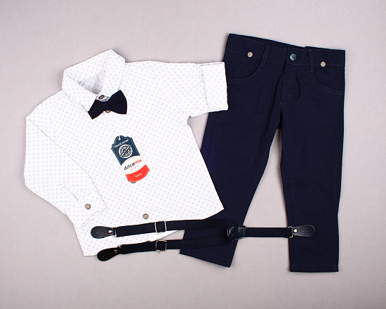 Костюм для мальчика (рубашка, брюки, бабочка, подтяжки), темно-синий, 20218