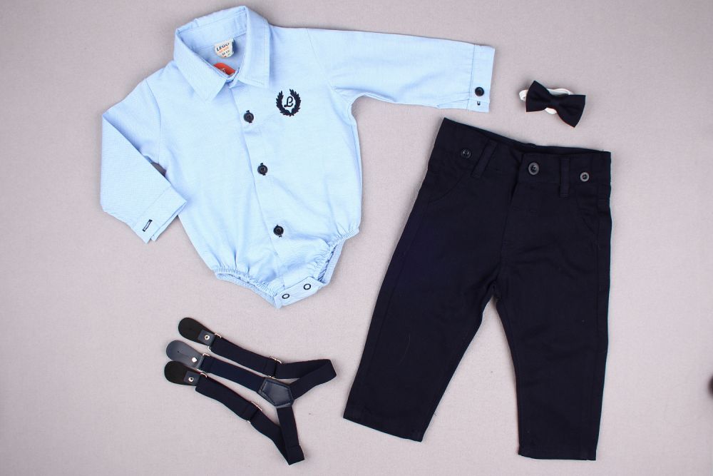 Костюм для мальчика (рубашка-боди, брюки, бабочка, подтяжки), голубой, 22014