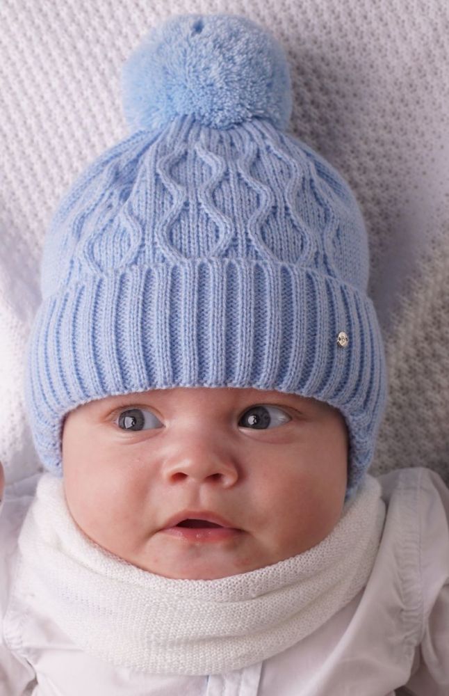 Зимняя шапочка для малышей с отворотом. Верхний слой связан из полушерстяной мериносовой пряжи, нижний слой выкроен из хлопкового полотна и полностью пришит, утеплитель изософт. Спереди вывязано рельефные ромбики. На макушке небольшой помпон. Аккуратные удобные завязки без узлов и наконечников. Шапочка хорошо тянется. Выбирая размер, ориентируйтесь на меньшее число (из-за подклада и утеплителя модель обладает умеренной растяжимостью). Подойдет на температуру от -5 до -25 (с капюшоном).