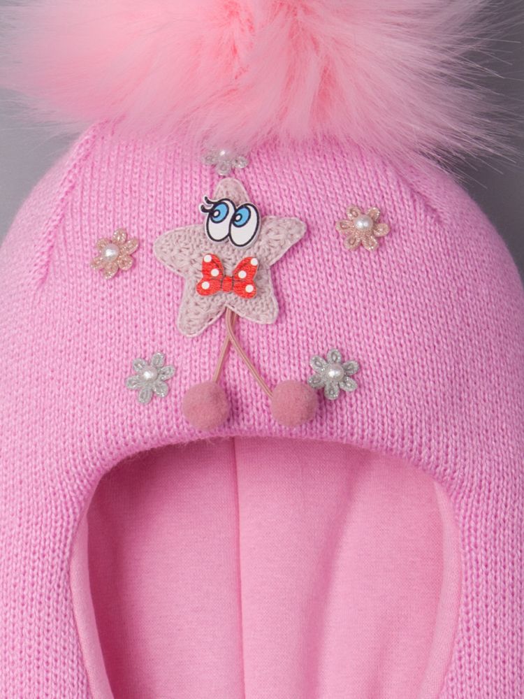 Оставить отзыв о «РБ 14813 Шапка-шлем вязаная для девочки с помпоном, нашивка звездочка с глазками, лавандово-розовый»