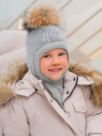 Теплый зимний шлем для девочек с натуральным меховым помпоном (привязан вручную, можно убрать). Верхний слой связан из полушерстяной мериносовой пряжи, подклад выкроен из хлопкового полотна и полностью пришит, утеплитель по всему шлему (кроме манишки). Вырез вокруг лица обработан эластичной бейкой по специальной технологии и не вытягивается в процессе носки. Ребенок может спокойно вертеть головой. При этом шлем не закроет глаз, оголив ухо. Размер равен окружность головы в см. Подойдет на температуру от минус 5 до минус 25 градусов (с капюшоном). Рекомендации по уходу: машинная деликатная стирка при температуре 30 градусов.