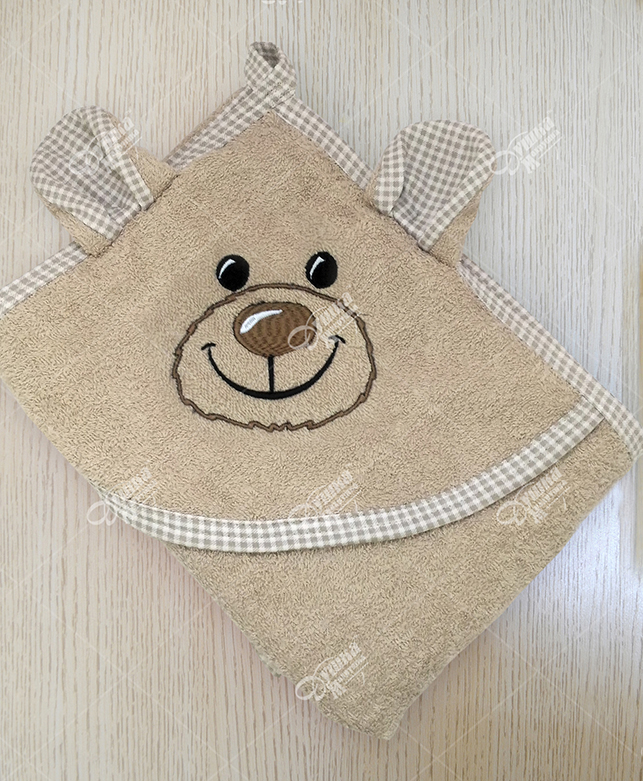 Полотенце с капюшоном и вышивкой мордочки "Мишки" выполнено из 100% хлопка, очень пушистое. Хорошо впитывает влагу, благодаря небольшой плотности быстро сохнет. Вышитый рисунок устойчив к истиранию даже после многочисленных стирок.